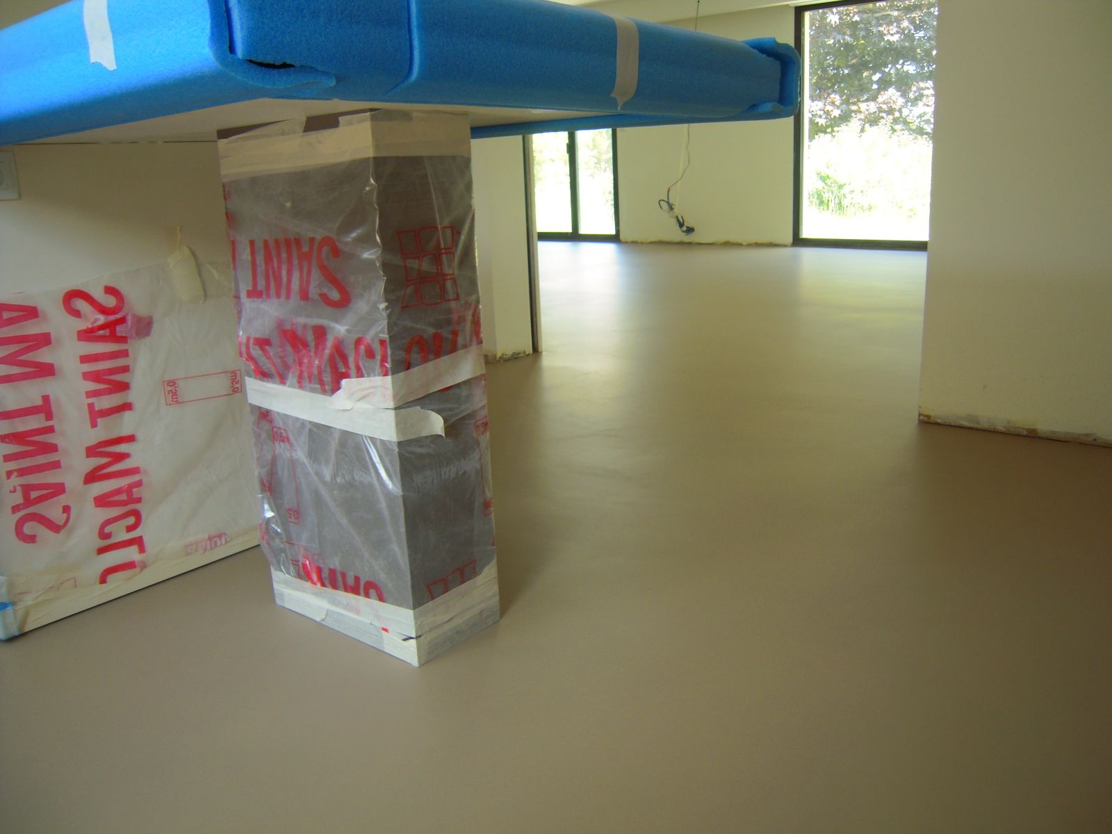 Ce sol coulé est posé sans aucun joint et peut, comme le béton ciré, recouvrir directement un carrelage ou un parquet grâce à son épaisseur de seulement 2 à 3 mm.