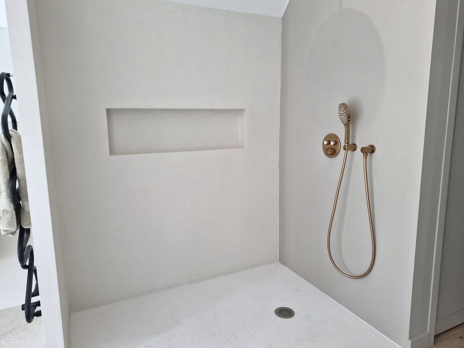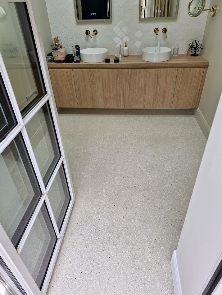 Découvrez nos réalisations de salles de bain en béton ciré ou en térrazzo ou granito dans le Finistère.